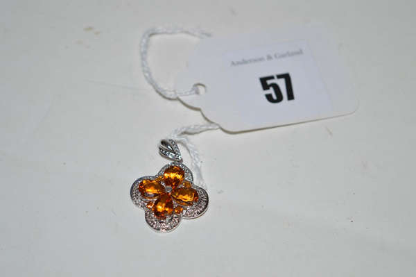 A citrine and diamond set pendant, surmounted in 9ct. white gold.