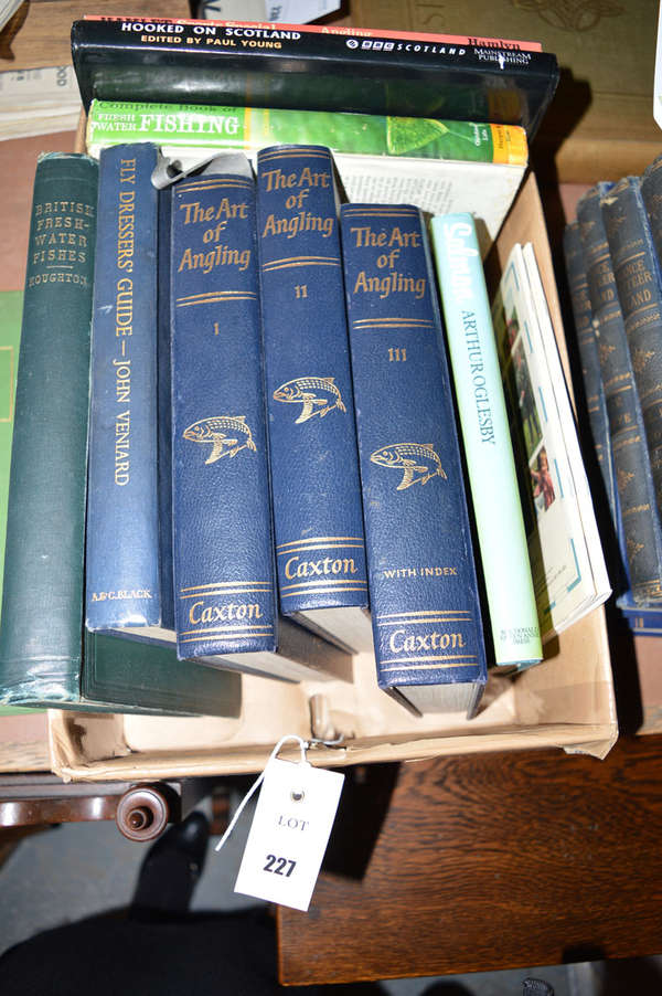 A collection of angling books, comprising: Caxton 'The Art Of Angling', vols. 1, 2 and 3; Houghton 'British Fresh Water Fishes'; John Veniard 'Fly Dressers Guide'; and six others.