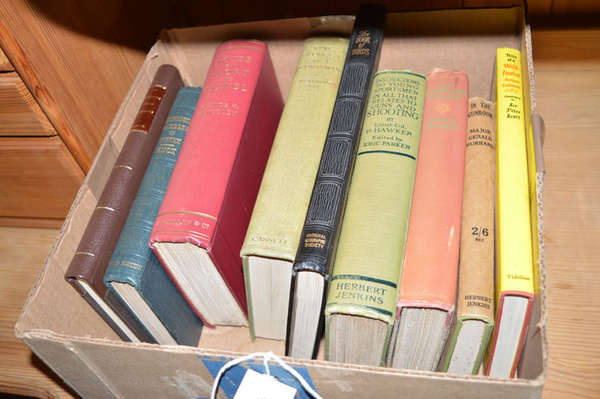 A collection of books 'Shooting' interest, including: George H. Kingsley 'Notes On Sport and Travel'; A. Wentworth Day 'King George V As A Sportsman'; Major Gerald Burrard 'In The Gun Room'; Arthur Cadman 'Tales Of A Wild Fowler'; and others. (9)