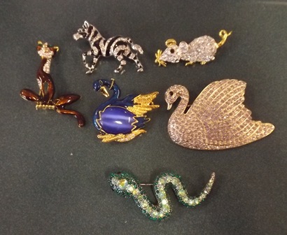 A COLLECTION OF COSTUME JEWELLERY BROOCHES to include a swan, snake, mouse, zebra and duck