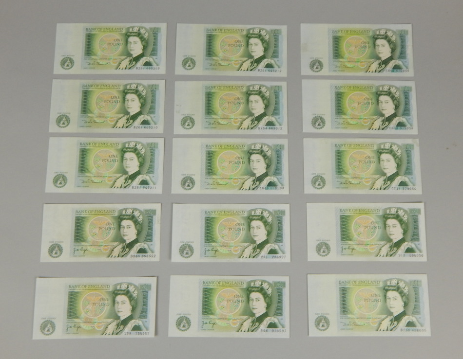A collection of fifteen £1 notes, chief cashier D F H F Somerset, to include a consecutive run of four