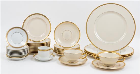 A Collection of Gold-Rimmed Porcelain Serviceware