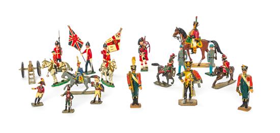 comprising 14 Blenheim soldiers, 12 French soldiers, 16 Charles Stadden cavalry figures, eight Charles Stadden standing soldiers, 6 miniature soldiers having an unidentified mark to the underside, two Britains Ltd. soldiers, 26 unmarked soldiers, two