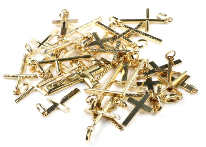Consisting of 33 different pendants in the shape of a cross. Gross 44 grams. Hover to zoom