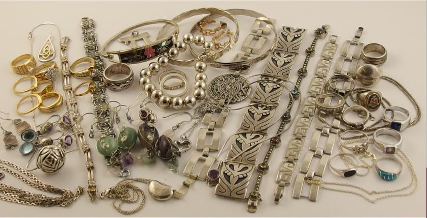 A collection of silver and costume jewellery to include bangles, bracelets and rings