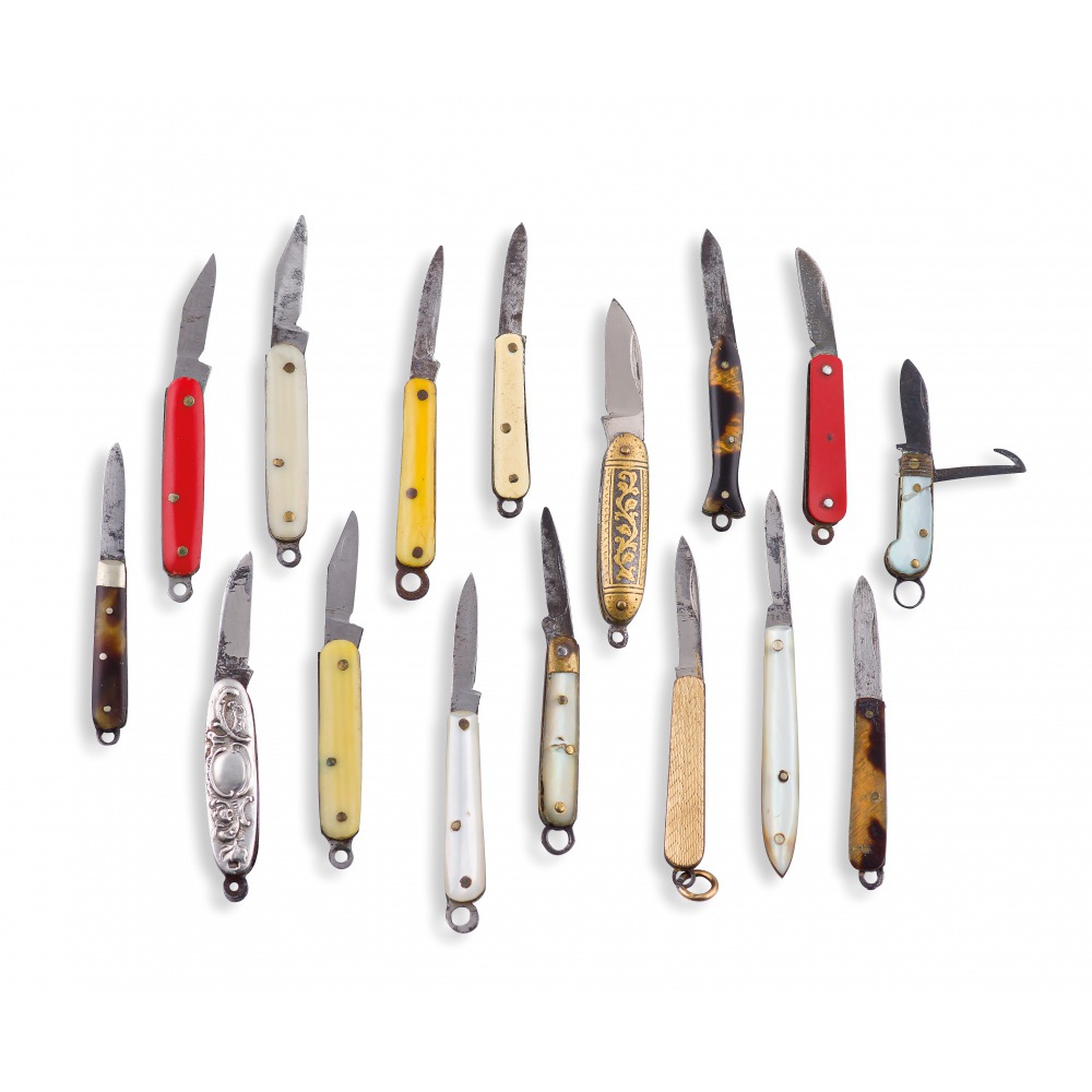 A collection of sixteen miscellaneous miniature folding pen knives, late 19th/early 20th century