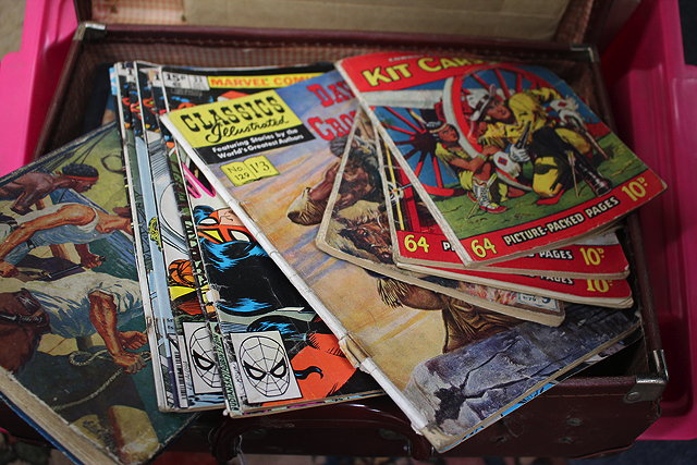 A COLLECTION OF VARIOUS EPHEMERA to include mid 20th century cowboy comics including Kit Carson, Buck Jones etc together with a number of comics from the Buffalo Bill Library and further comics and comic albums, also a 1956 Olympic games official rep