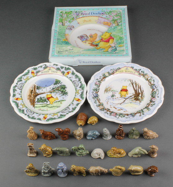 A collection of Wade Whimsies and 3 collectors wall plates