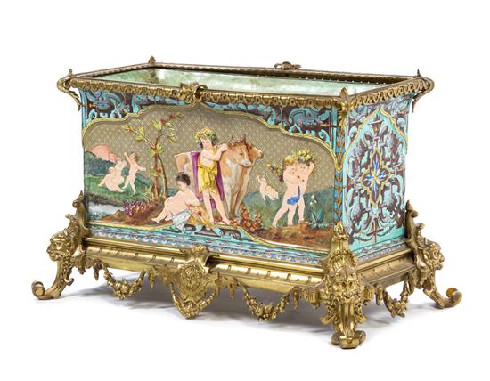 A Continental Gilt Bronze Mounted Faience Jardiniere