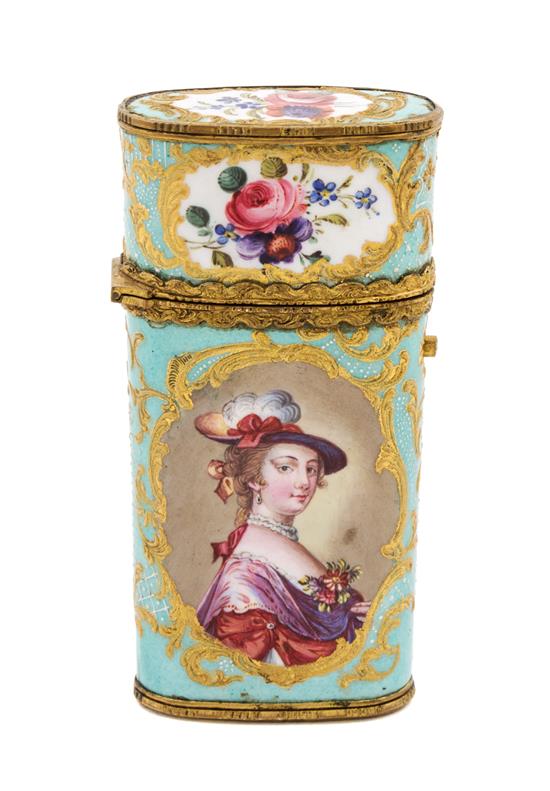 A Continental Gilt Metal Mounted Enameled Necessaire