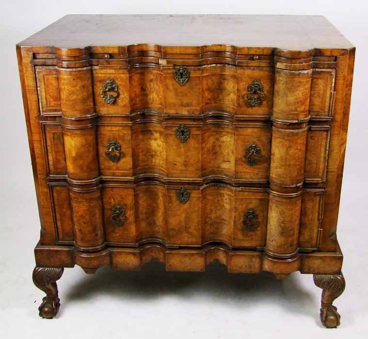fitted with a slide, with three long graduated drawers beneath, on claw and ball feet