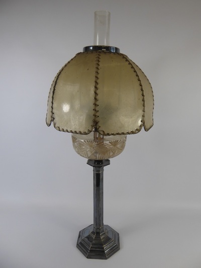 A Cut Glass Messengers Nr 2 Oil Lamp, with shade.
