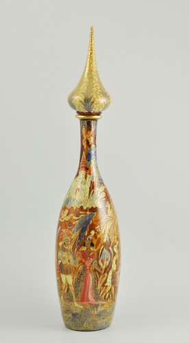A Czech or Italian enamelled glass ewer, signed ''Rojo'', gilt detailing