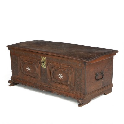 A Danish Baroque oakwood chest with owner initials and date, “1756”