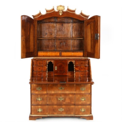 A Danish Baroque walnut and giltwood bureau