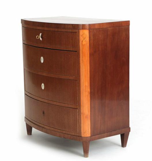 A Danish empire mahogany chest of drawers and a contemporary mirror