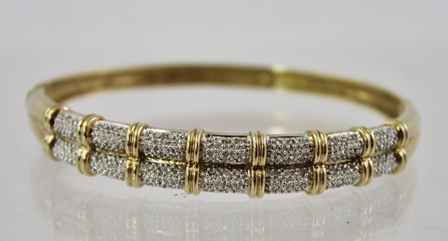 A DIAMOND AND GOLD COLOURED METAL BANGLE