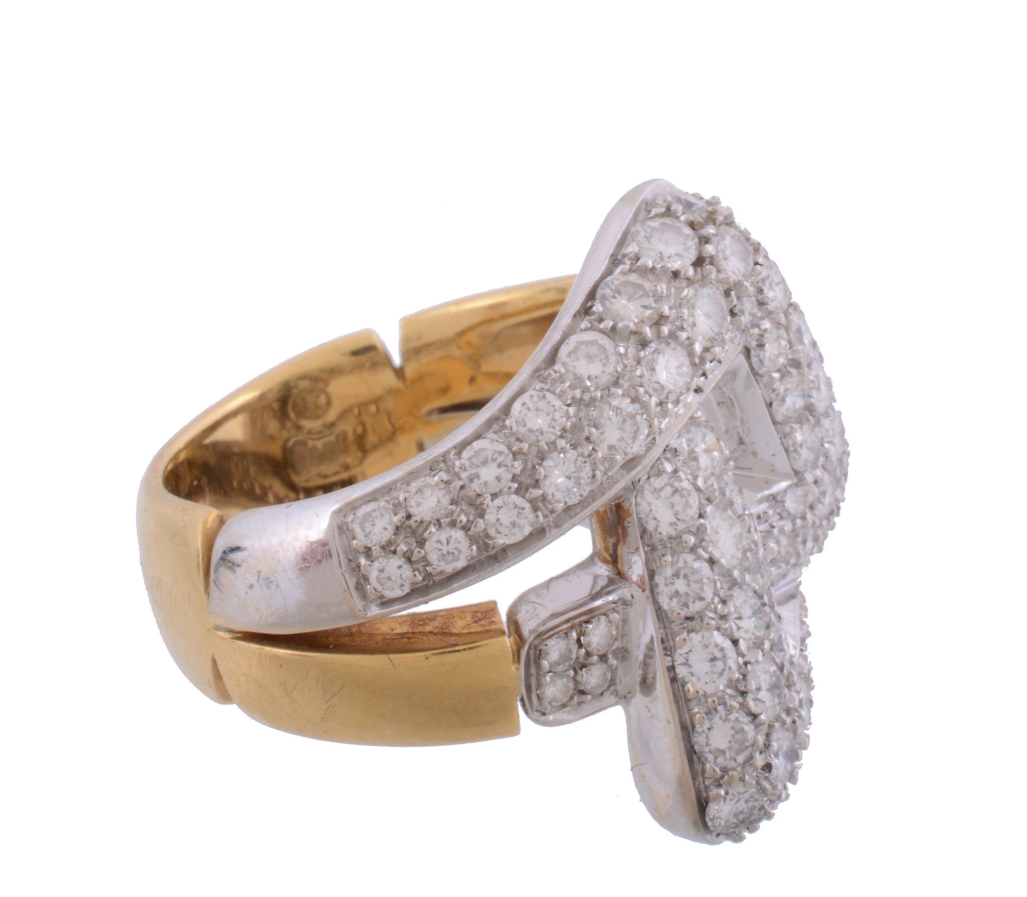 composed of two intertwining panels set throughout with brilliant cut diamonds, stamped 750, finger size N 1/2
