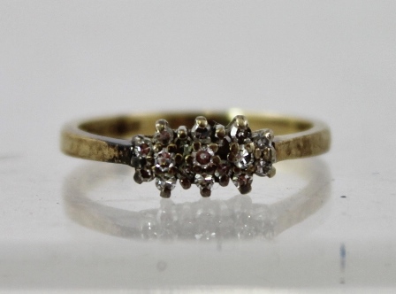 having nine 8/8 cut diamonds in 9ct gold claw setting, size J