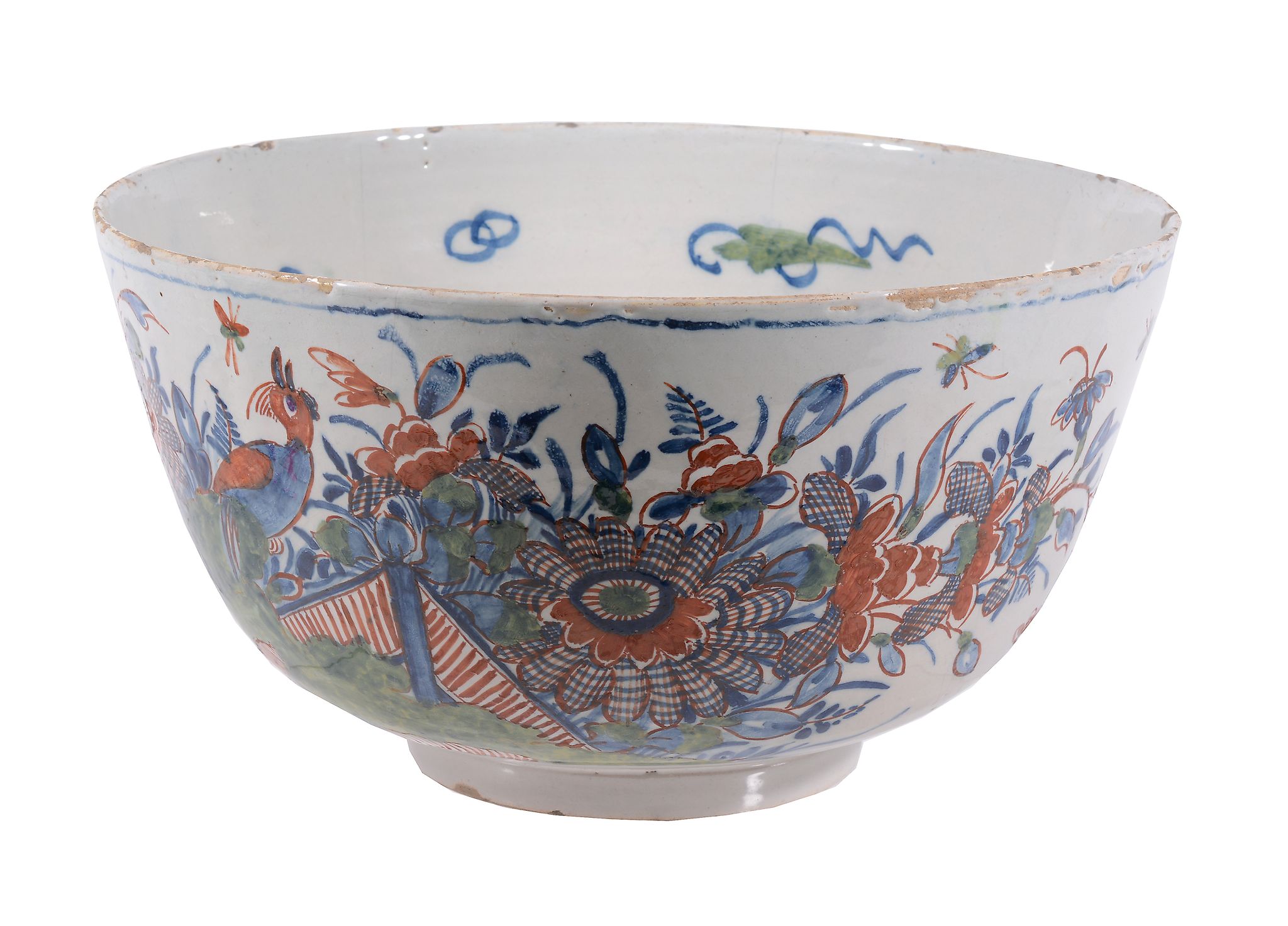 A Dutch Delft polychrome chinoiserie punch bowl