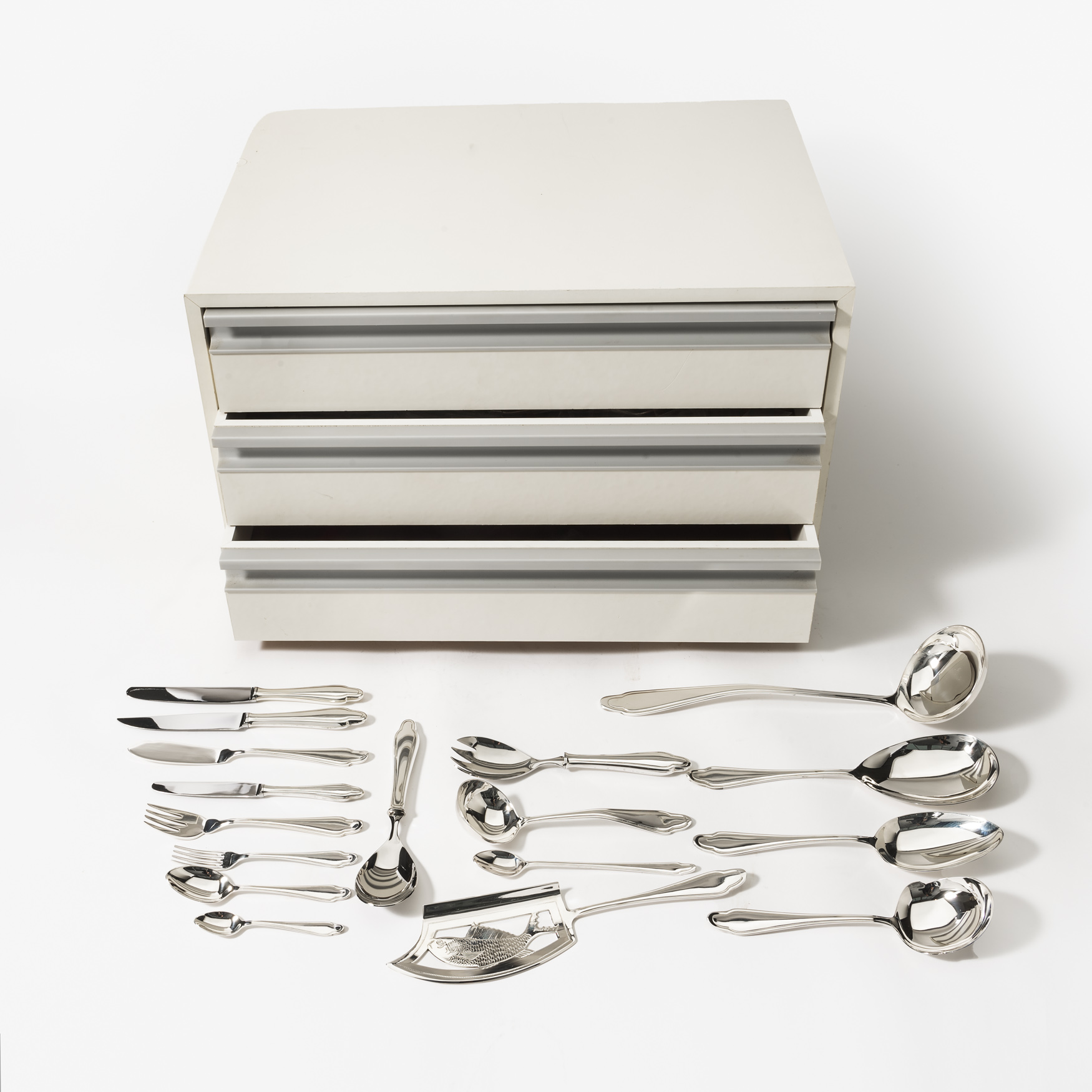 Mark of Gerritsen Zilversmeden, Gouda, 2000, with millennium mark, 925/1000. With dog-nose handles, comprising twelve table spoons, twelve table forks, twelve table knives, twelve dessert spoons, twelve dessert forks, twelve dessert knives, twelve di