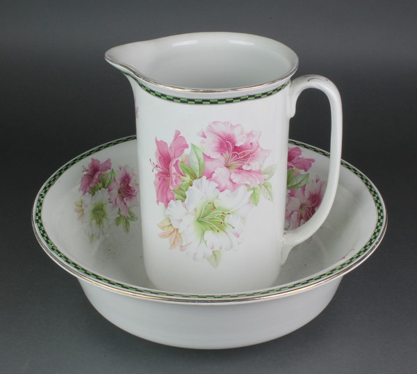 A Edwardian wash stand jug and basin decorated with flowers