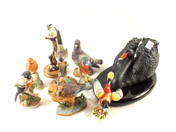 A Franklyn Mint Black Australian Swan and other bird ornaments