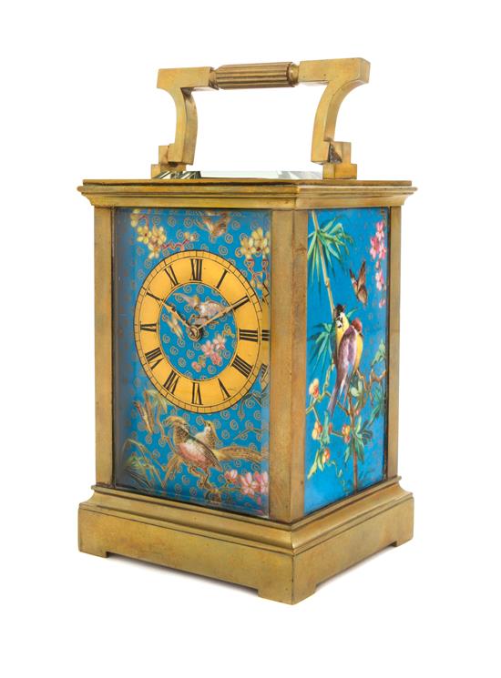 A French Brass and Champleve Carriage Clock