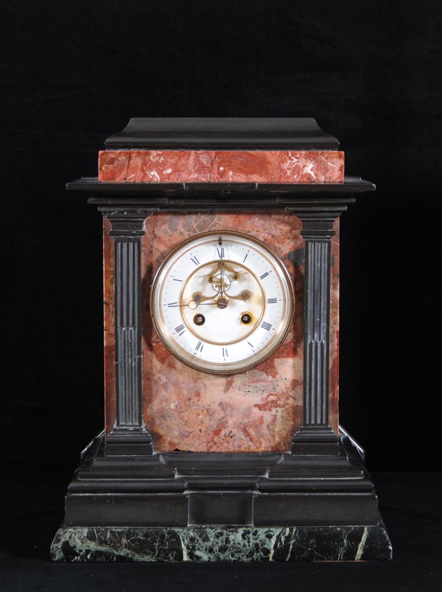A FRENCH BRECCIA ROSSA, VERDE DELLE ALPI AND BLACK MARBLE OF BELGIO CASE PENDOLUM CLOCK