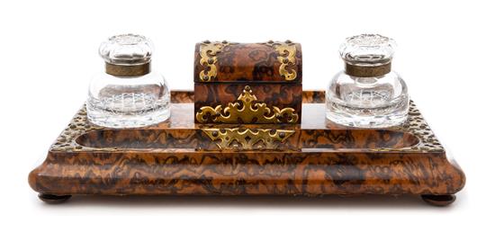 A French Faux Tortoise Shell and Gilt Bronze Mounted Ink Stand