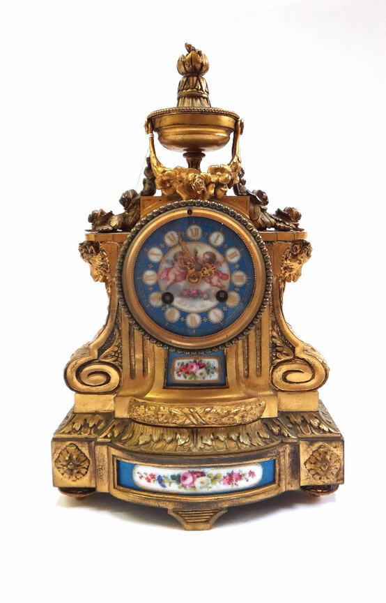 the porcelain dial painted with cherubs and inscribed 'Lerolle Fres Paris' the bell strike movement inscribed with the same