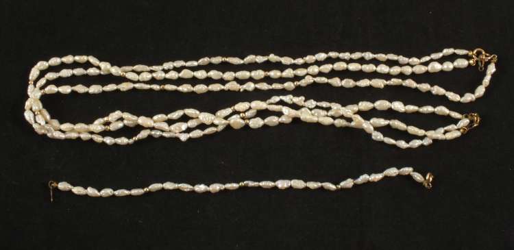 A Freshwater Culture Pearl necklace and bracelet set with 14ct Gold clasp and beads