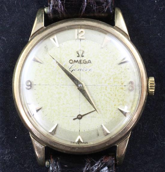 A gentleman's late 1950's 9ct gold Omega manual wind wrist watch