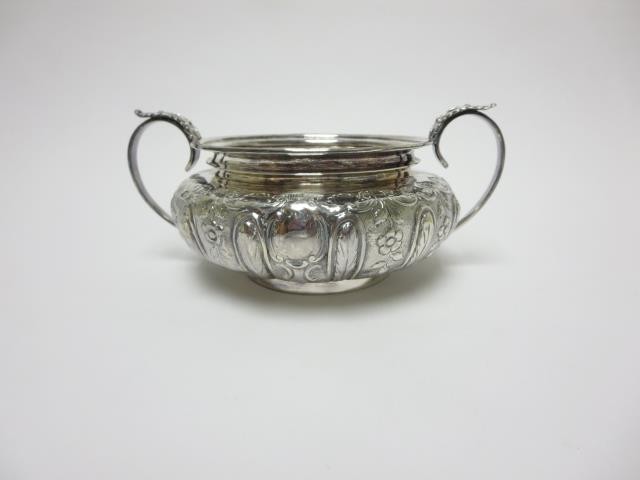A George III silver two-handled Sugar Bowl with floral embossing and vacant cartouches, London 1817, maker: J.E. Terry & Co