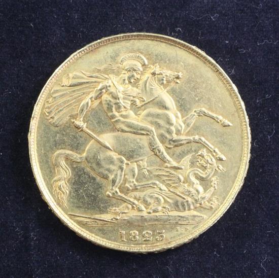 A George IV gold two pounds, 1823, St George to reverse, EF