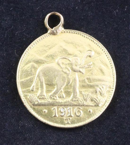 A German East African 15 Rupien World War I 1916 Seige gold coin or 'Tabora Pound', Type B (mounted with suspension ring)