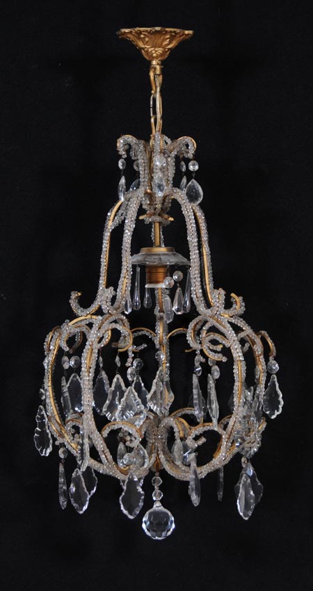 A GILT-IRON WITH GLASS PEARLS CHANDELIER