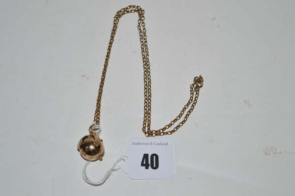 A gilt metal Masonic cross orb pendant, by J.H.W., on 9ct. yellow gold chain.