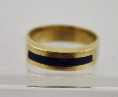 the top inset Lapis Lazuli on a plain band shank, size N, stamped 18k