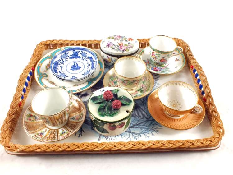 A Grainger Worcester floral cup and saucer, a 19th Century oval lidded box (cracked lid) and other china