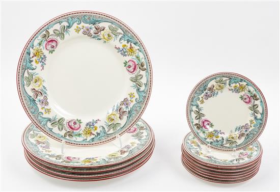 in the Moss Rose pattern, comprising 14 dinner plates and 8 bread plates