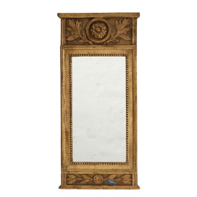 A Gustavian gilt wood mirror, carved with foliage. Sweden