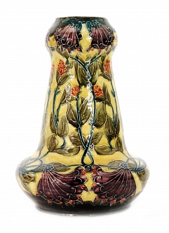 A Hancock & Sons Morris Ware vase designed by George Cartlidge decorated with purple bell flowers on blue stems with red berry heads, printed mark, signed, height 25cm