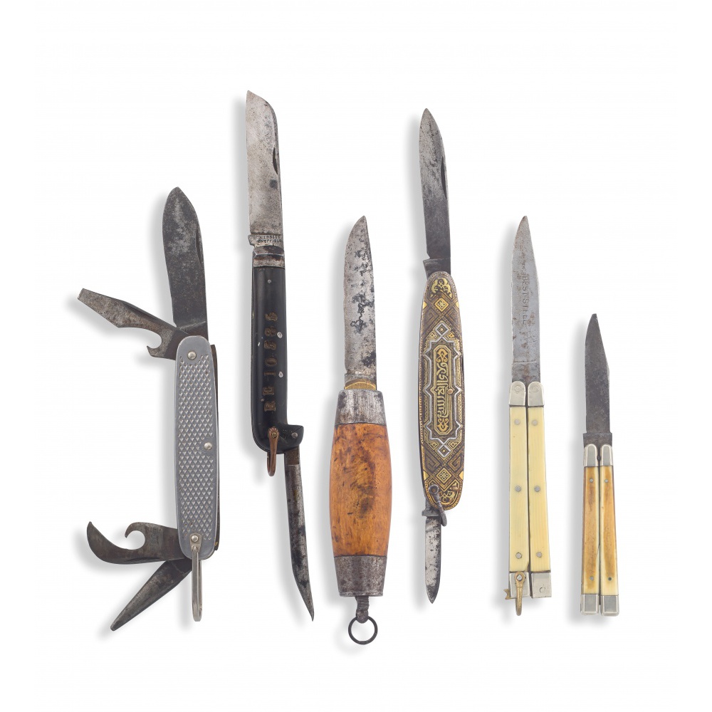 "the blade stamped to the front A. IBBITT SHEFFIELD, the reverse stamped I military arrow D5, the handle stamped RE 10383, with marlin spike, length with open blade 22cm; a Kingston utility metal four implement knife, the blade stamped USA, the can o