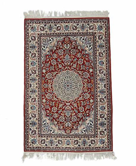 A Isfahan rug, Persia. Medallion design. Knotted with kork wool on silk warps