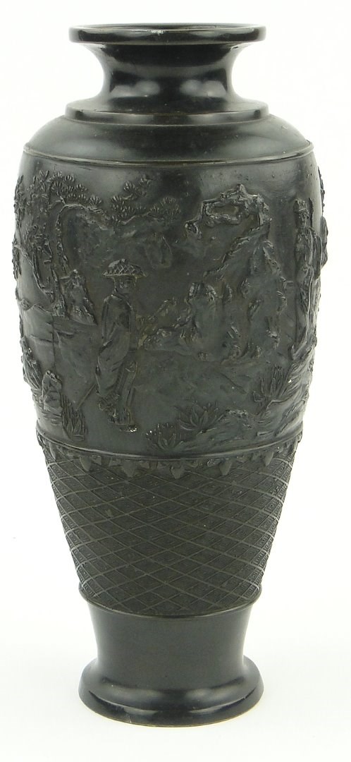 A Japanese bronze baluster vase with figure decoration, height 12''.