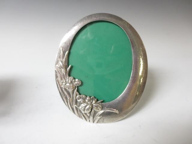 A Japanese silver oval Photograph Frame with floral embossing and hammered design