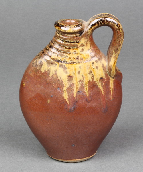 A John Leach Muchelney Pottery slip glaze flattened baluster bottle impressed marks