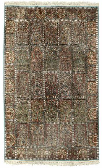 A Kashmir carpet, silk on wool, classical Qum garden design with birds, flowers and foliage