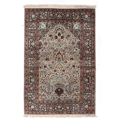 A Kashmir full silk rug, India. Classical flower vase design